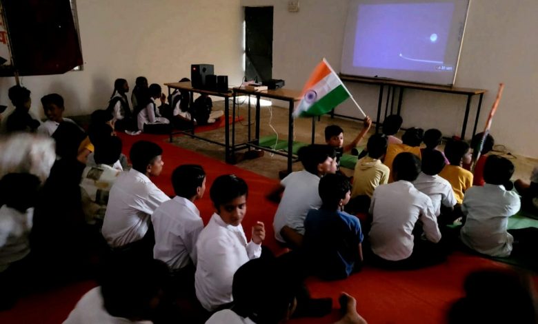 शिशु मंदिर के बच्चों ने चंद्रयान की लैंडिंग का सीधा प्रसारण देखा।