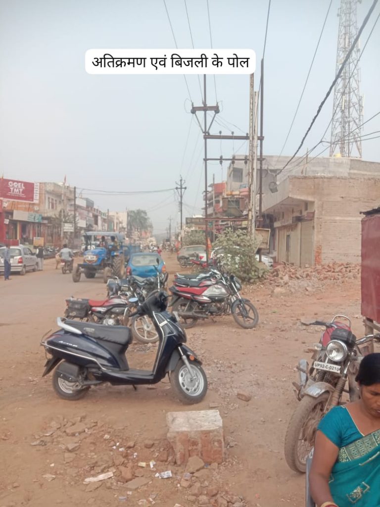 विद्युत पोल बीच सड़क से शिफ्ट करने की आवश्कता।
