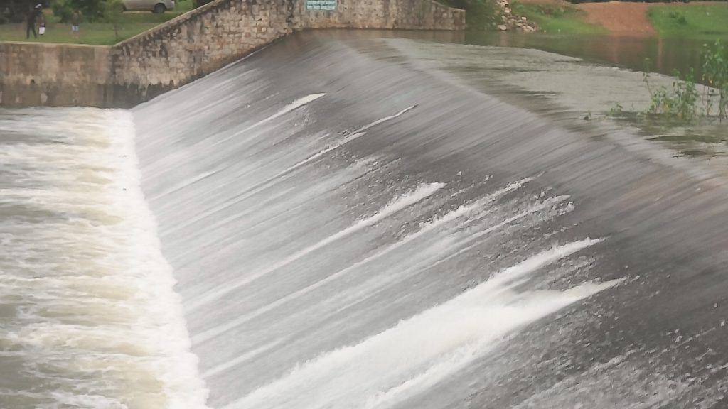 घोंघा जलाशय का वेस्ट वियर छलका, मनोरम दृश्य को देखने उमड़ी लोगों की भीड़।